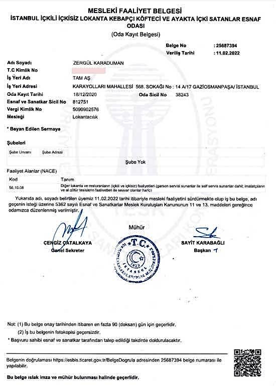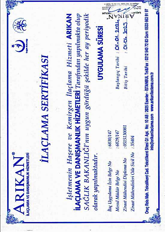 İşletme Kayıt Belgesi Faaliyet Belgesi Marka Tescil Belgesi İlaçlama Sertifikası